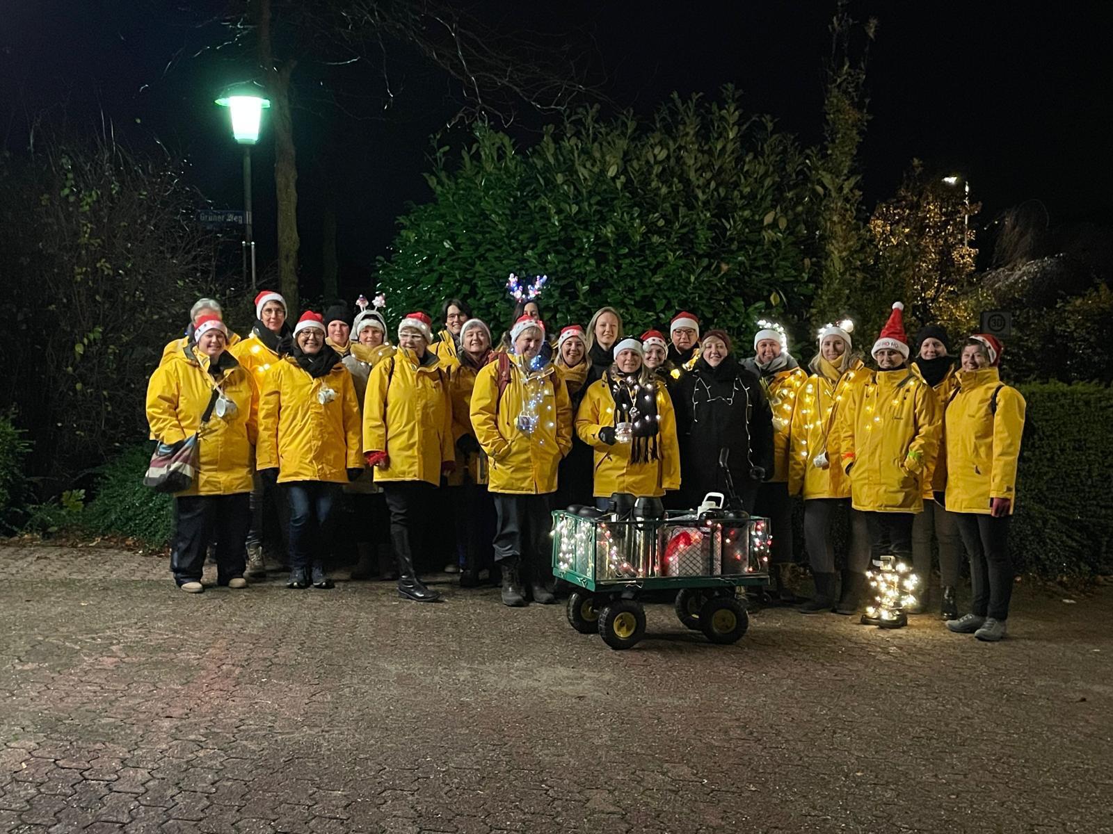 Wenn die Tage kürzer werden und die Adventszeit vor der Tür steht, blinken bei unseren Gardefrauen die roten Weihnachtsmannmützen. Bei der traditionellen Glühweinwanderung ziehen sie mit dem weihnachtlich geschmückten Bollerwagen bestückt mit leckeren, wärmenden Getränken durchs Dorf und bringen so ein bisschen Karneval in die vorweihnachtliche Zeit.